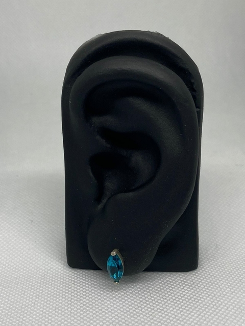Brinco Zircônia Navete Azul Tiffany Prata 925